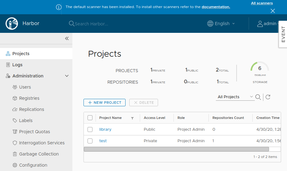 Harbor is such a private registry. It's an open sourced project lead by VMware and is, as of this writing, a CNCF project in incubating status. But Harbor is not just a private registry where one can push and pull images from - it also allows to "plug" vulnerability scanners into the registry. Imagine an anti-virus-scanner on your workstation which runs scans through your files and directories in your file system. More or less the same happens with the pluggable scanners inside Harbor: The images are scanned for known vulnerabilities. Harbor features one embedded scanner already, called clair. When Harbor is installed with the relevant parameter (./install.sh --with-clair), clair will be running alongside Harbor.